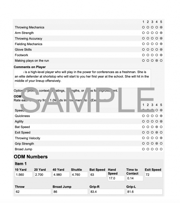 Player evaluations are available for purchase for the next week ($45/player). Evaluations take 10 business days to be written, formatted and posted from the date of purchase. Evaluations are posted to the player's profile, but only viewable by the player when logged in.